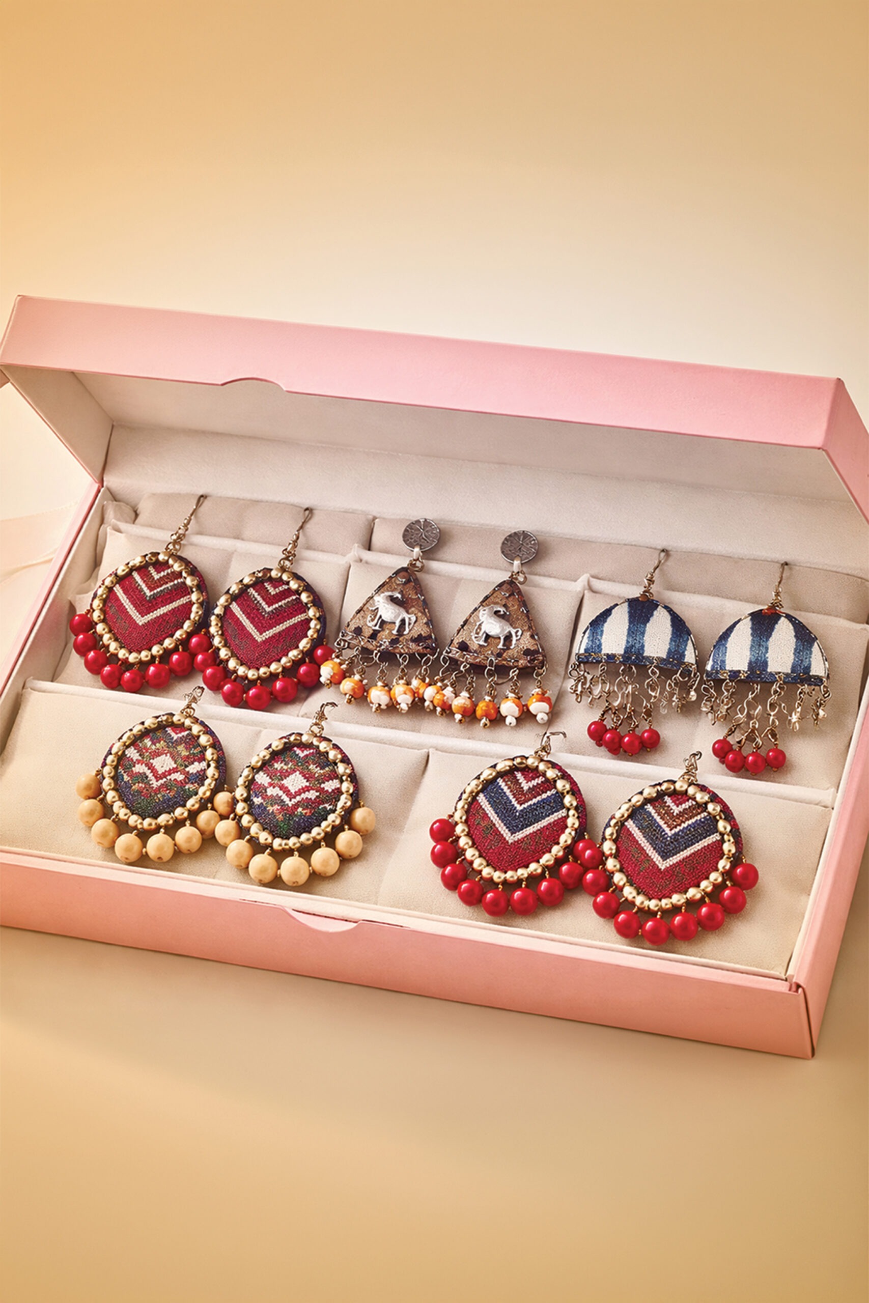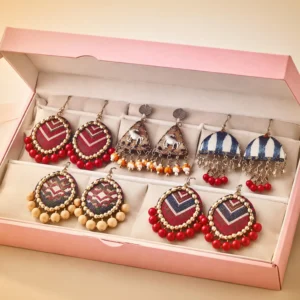 Celebrate timeless craftsmanship with the Nitya Artisan Heritage Collection, a beautifully curated set of 5 handcrafted earrings designed to bring culture, color, and character to your jewelry wardrobe. Thoughtfully designed for versatility, these lightweight earrings add a unique touch to every outfit—whether you’re dressing up for a celebration or elevating your everyday look.