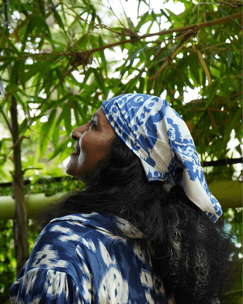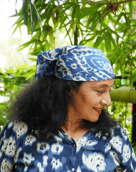 Channel timeless charm with the Indigo Echo Bandana, featuring classic ikat-inspired motifs in rich indigo blue. Crafted from breathable cotton-blend fabric, this bandana wraps you in comfort and effortless style—perfect for laid-back brunches or boho-inspired evenings.