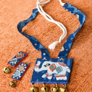 The Megh Malhar Set combines earthy craft with contemporary vibrance. Featuring indigo shades, geometric mirrors, and festive ghungroos, it’s a melody of art and tradition — perfect for those who love handcrafted charm.