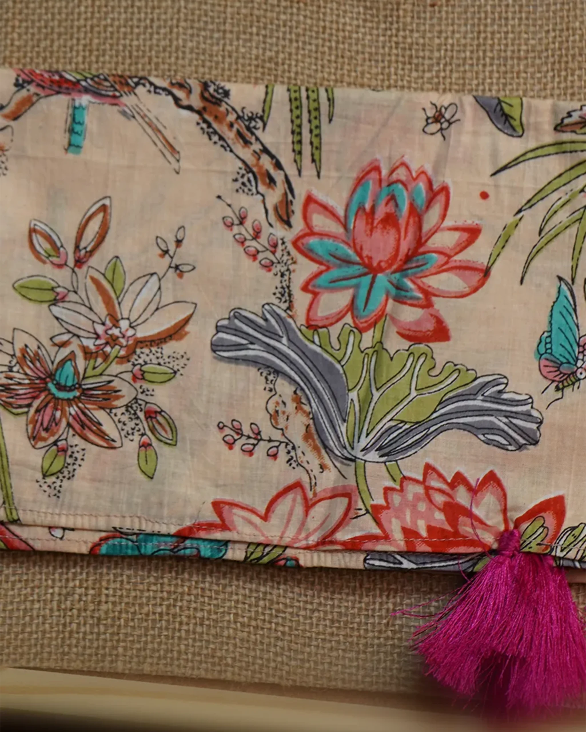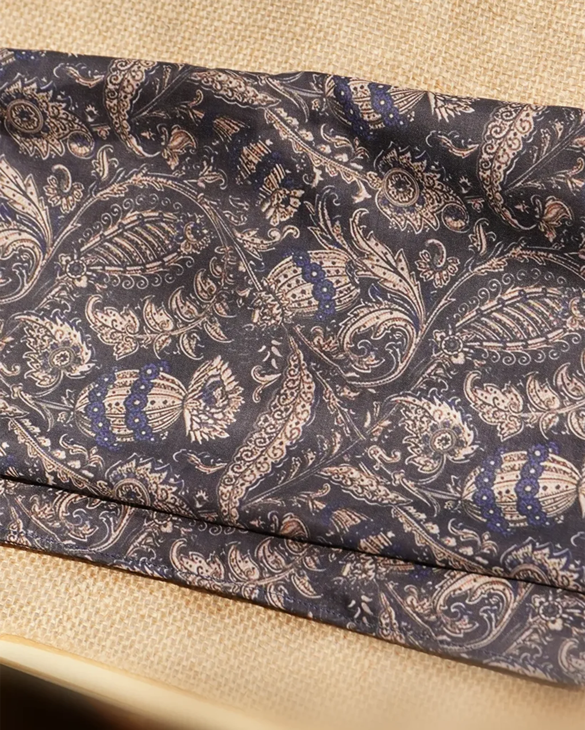 The Kaash Bandana draws inspiration from the wild Kaash grass that sways under Diwali moonlight. Its flowing pattern and muted tones evoke serenity, balance, and understated beauty.