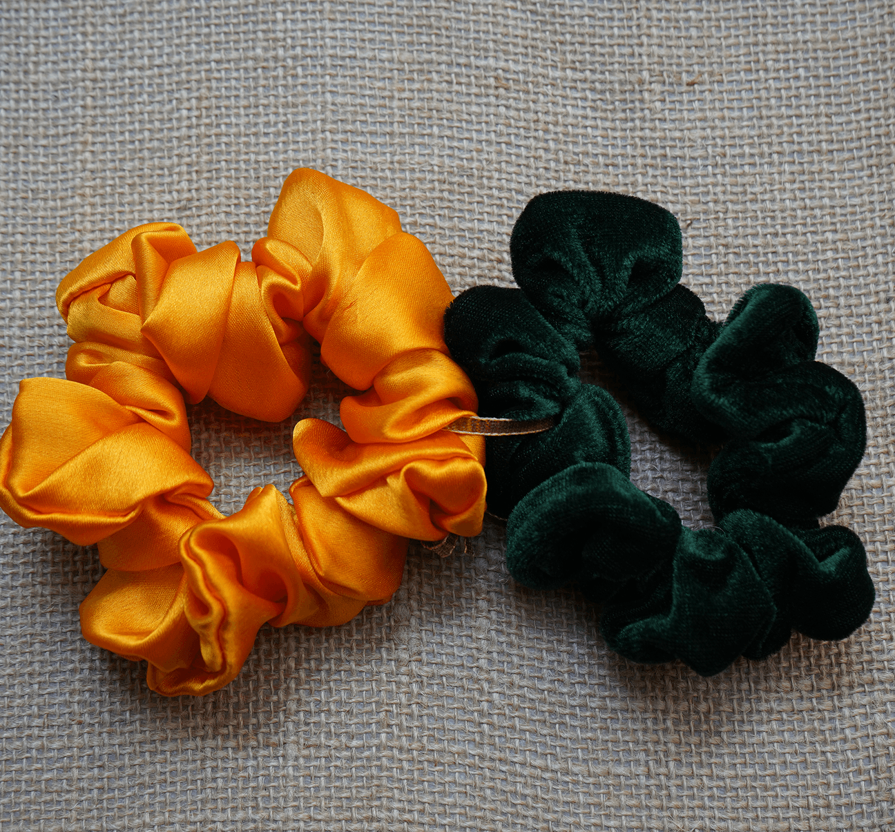 A bold and beautiful combo — sunshine gold satin meets rich forest green velvet. Perfect for adding festive flair or a luxe twist to your everyday style.