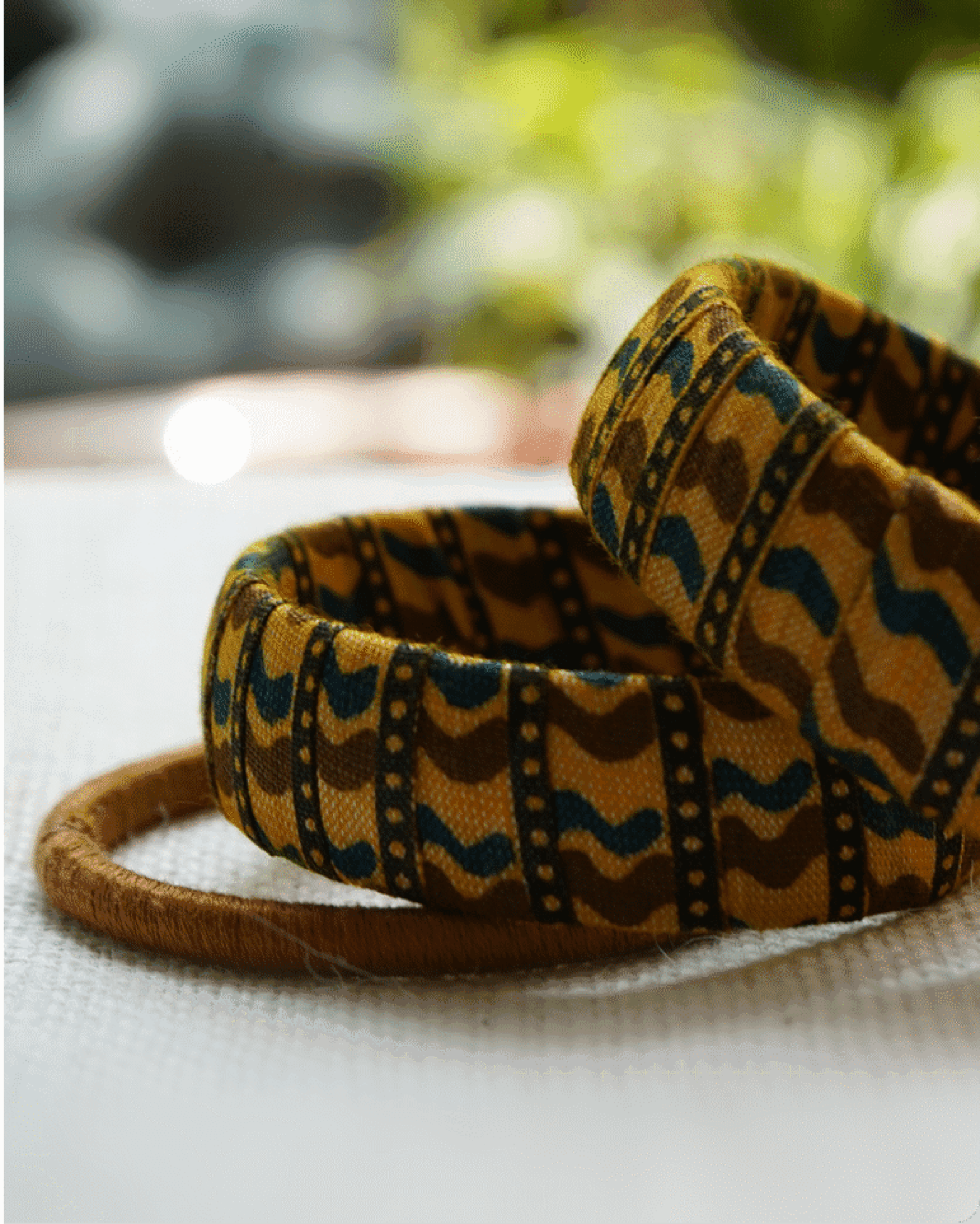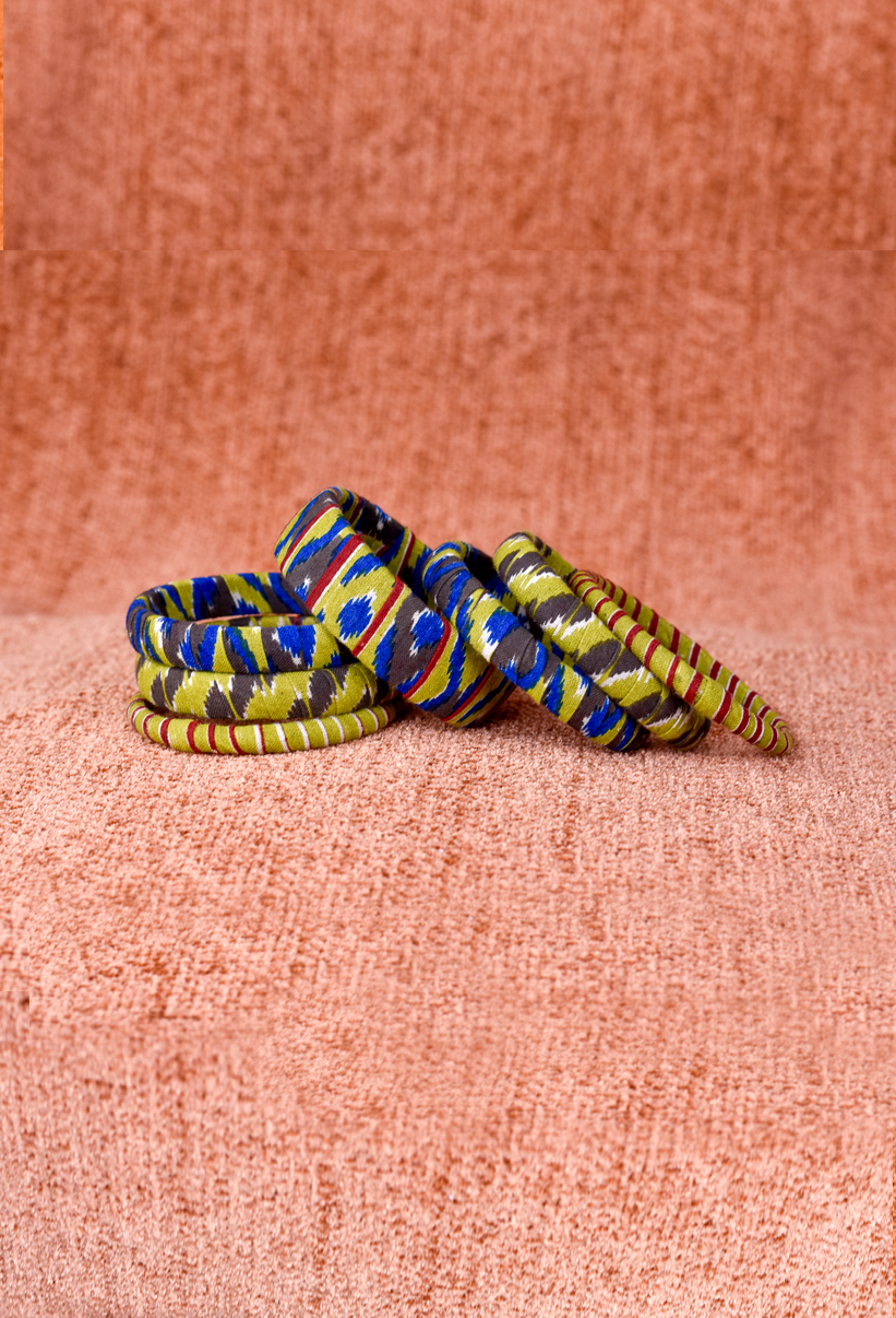 Material: Fabric-covered bangles made with traditional ikat textile