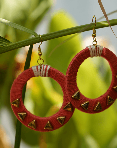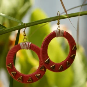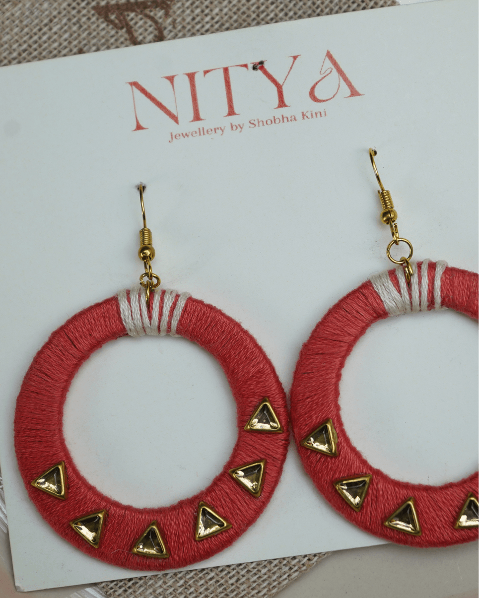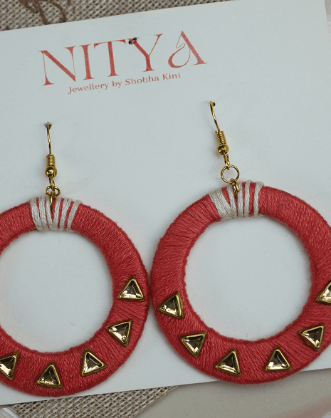 Material:  Thread-wrapped hoops, metallic triangle charms, metal hooks