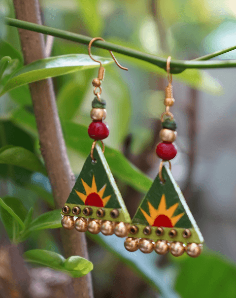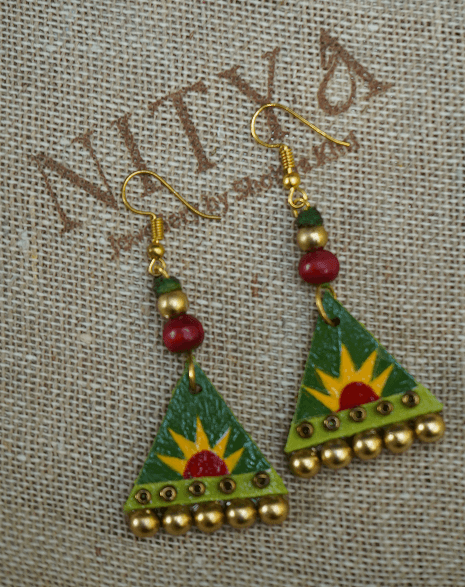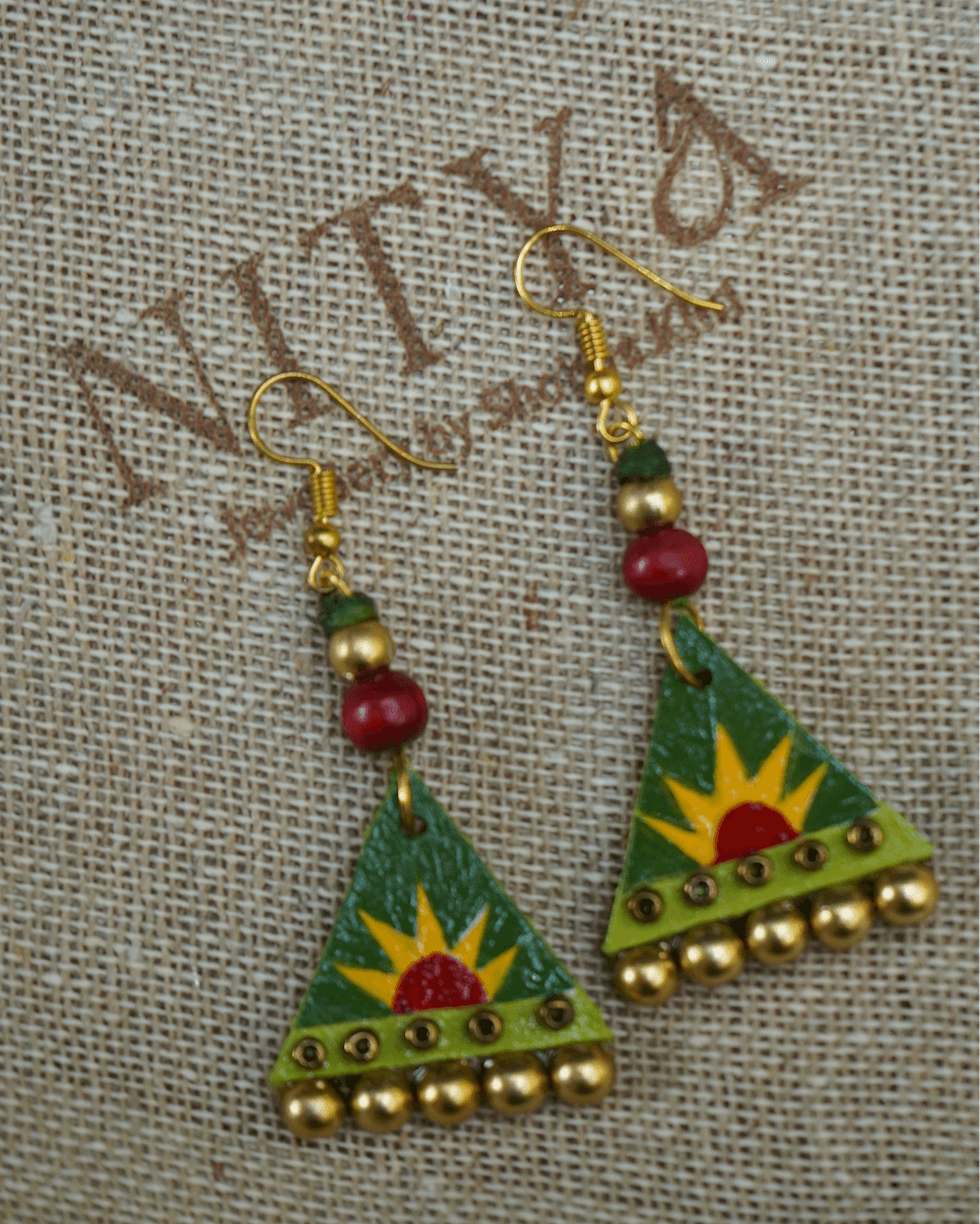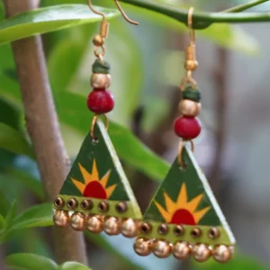 Inspired by nature?s quiet elegance, the Swarna Patra Studs bring the beauty of golden leaves to life. Their matte finish and organic shape reflect a blend of tradition and minimalist design. Color: Matte Gold Material: Hand-painted wooden (mdf) earrings, wooden beads, and gold-toned metal bells