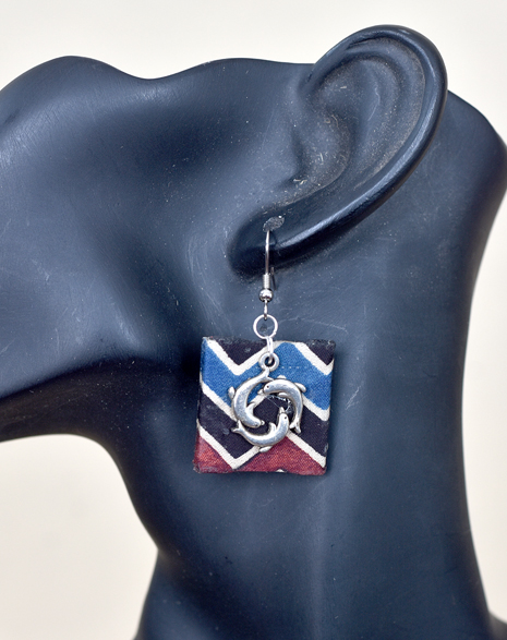 Material: Printed Fabric, Oxidized Silver Alloy Dolphin Charm, and Fish Hook.